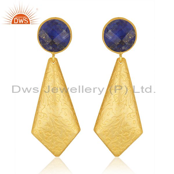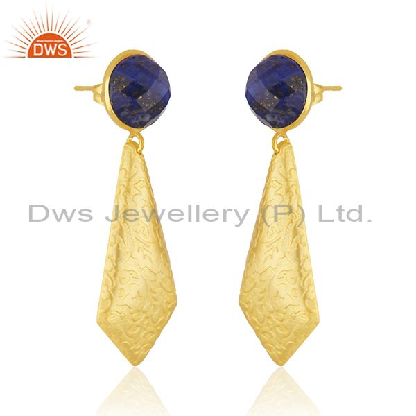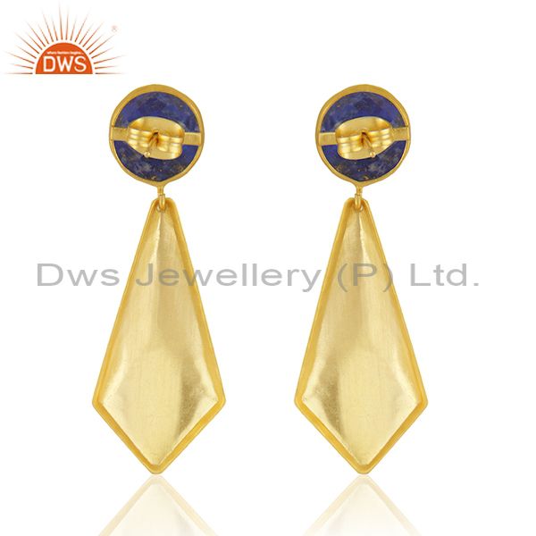 Lapis Gemstone New Arrival Gold Plated Brass Fashion Earrings Jewelry Supplier
