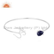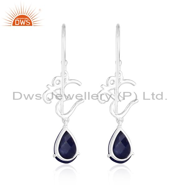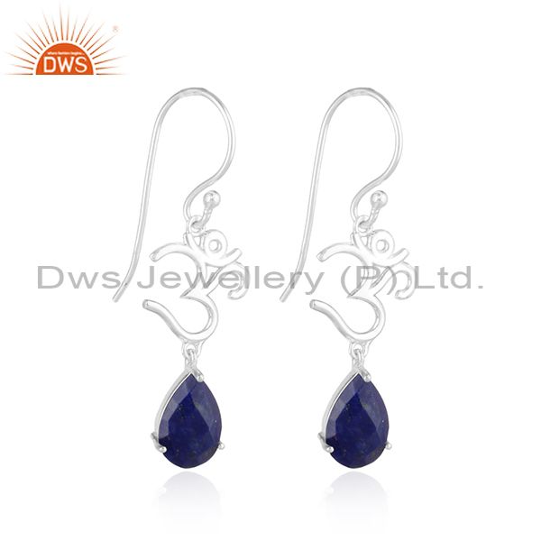 Lapis Lazuli Gemstone 925 Sterling Fine Silver OM Charm Earrings