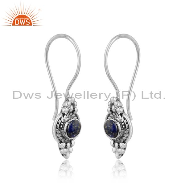 Lapis Lazuli Gemstone Designer 925 Silver Handmade Oxidized Earring