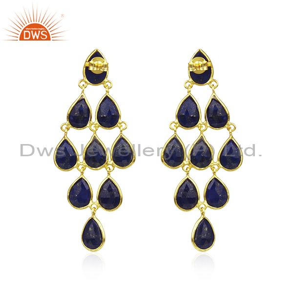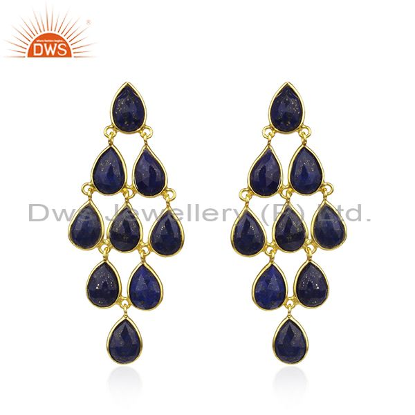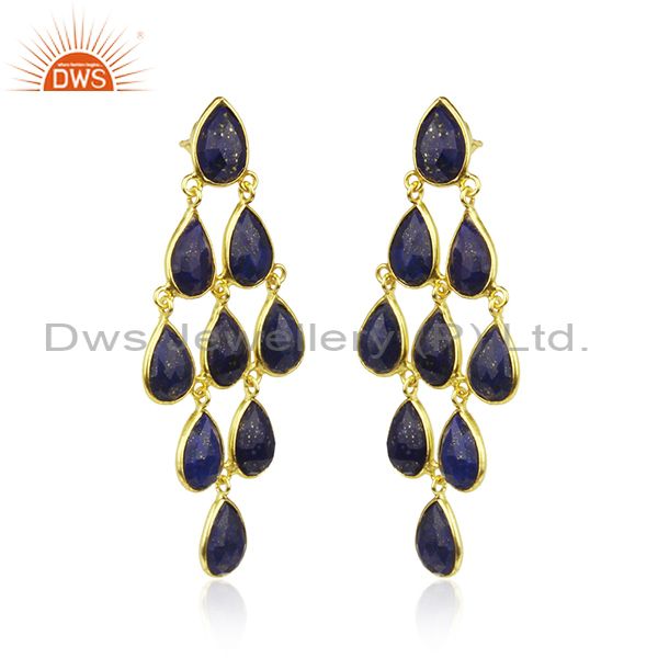 Lapis Lazuli Gemstone Gold Plated 925 Silver Earrings Manufacturer