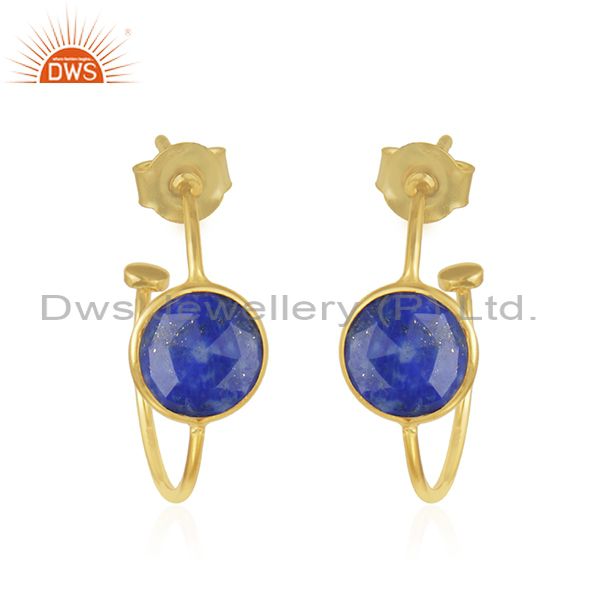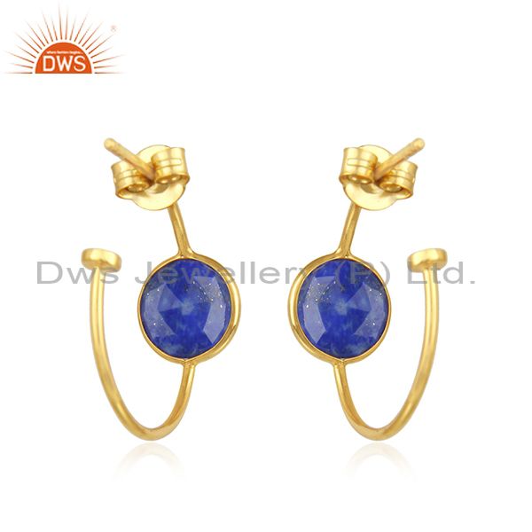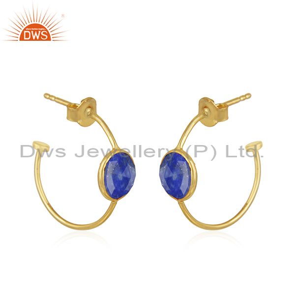 Lapis Lazuli Gemstone Gold Plated Handmade Silver Hoop Earring Jewelry