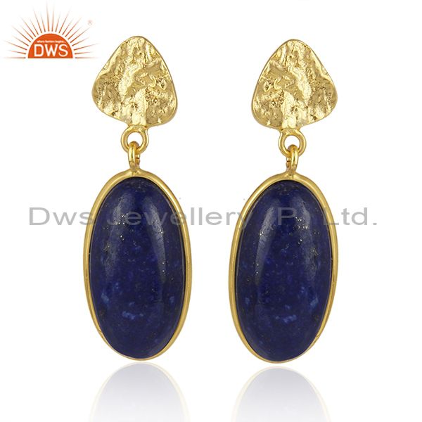 Lapis Lazuli Gemstone Handmade Gold Plated 925 Sterling Silver Earring