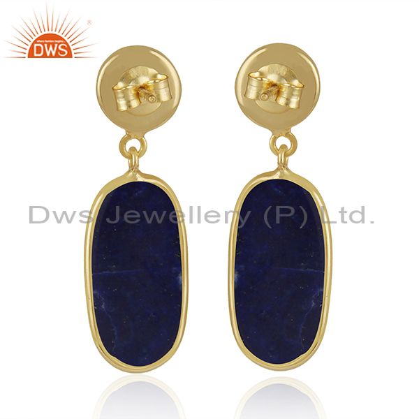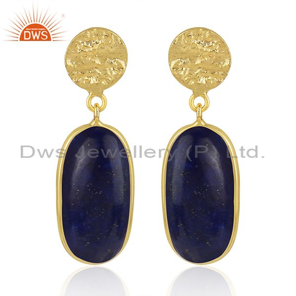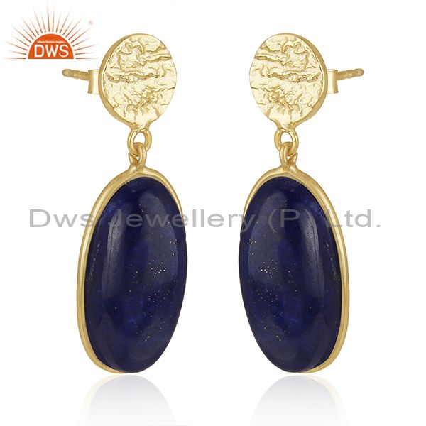 Lapis Lazuli Gemstone Handmade Yellow Gold Plated 925 Silver Earrings