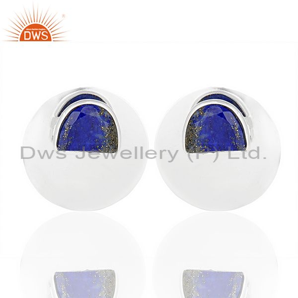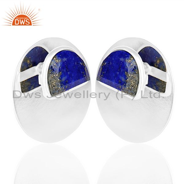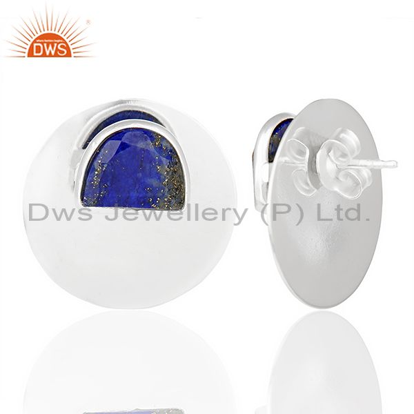 Lapis Lazuli Gemstone Stud Solid 925 Sterling Silver Earrings Jewelry