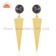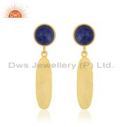 Lapis Lazuli Gemstone Yellow Gold Plated Dangle Earrings Manufacturer India