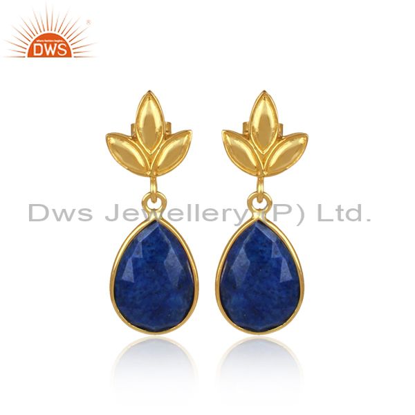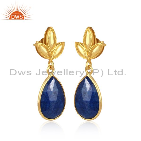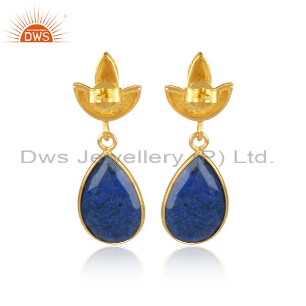 Lapis Leaf Stud Gold Plated Wholesale Drop Sterling Silver Jewelry