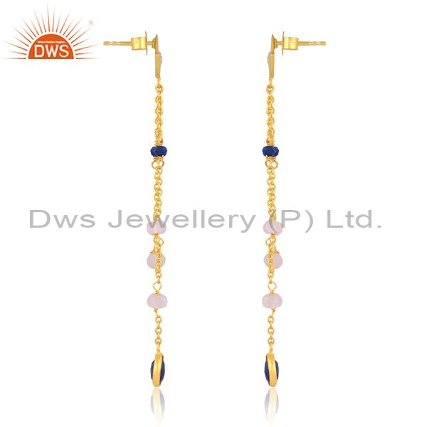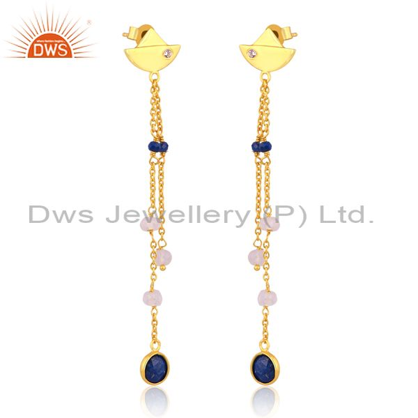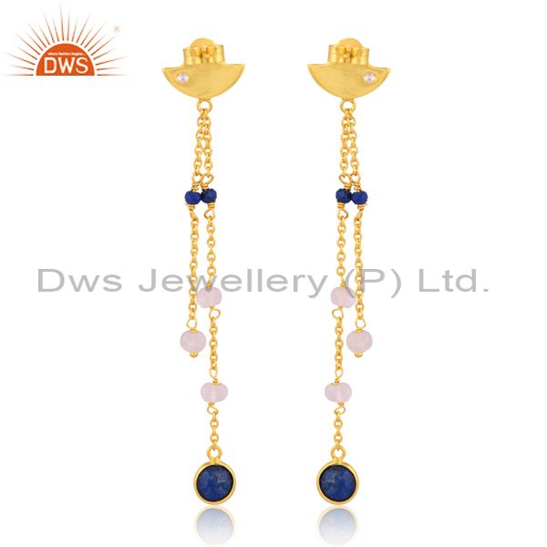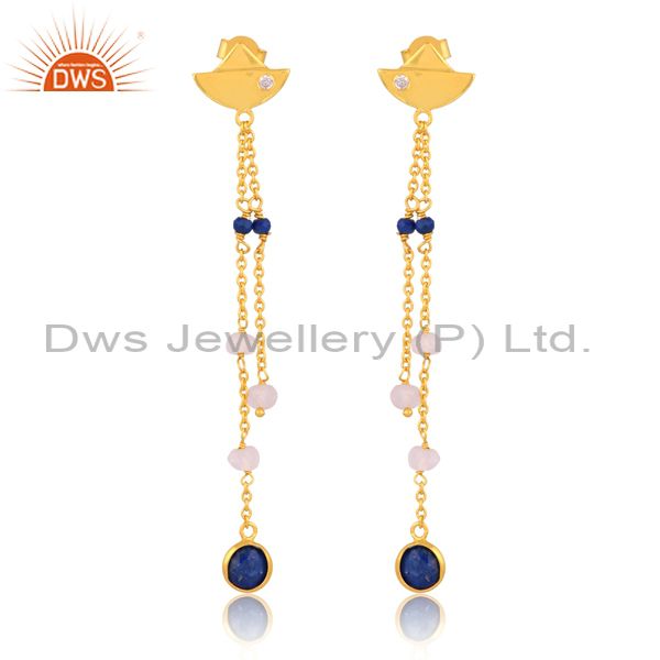 Lapis, Rainbow Moonstone, Zirconia Sterling Silver Earring