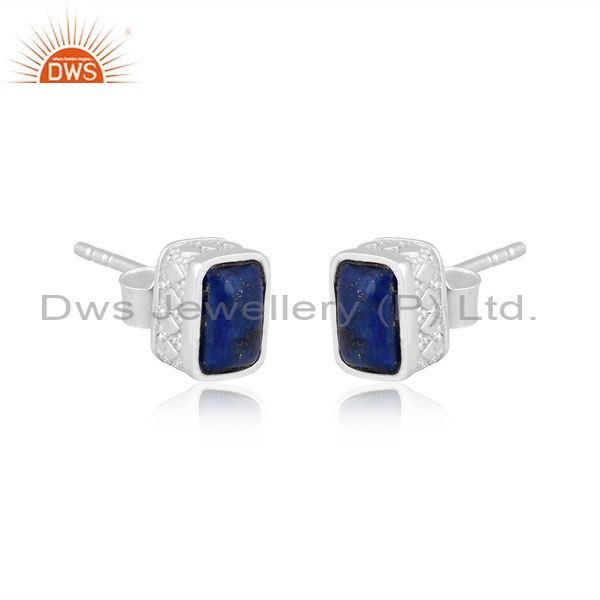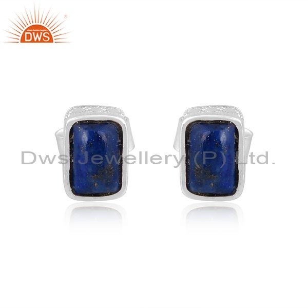 Lapis Set Fine 925 Silver Rectangular Statement Earrings