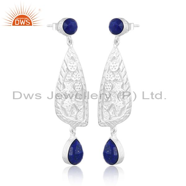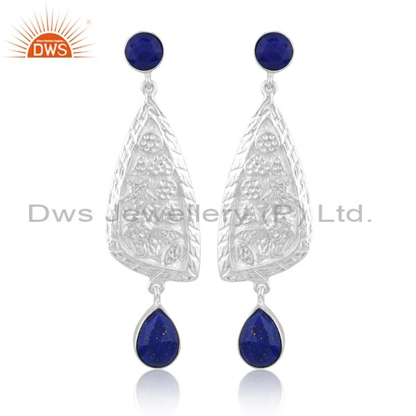 Lapis Set Fine 925 Sterling Silver Fancy Statement Earrings