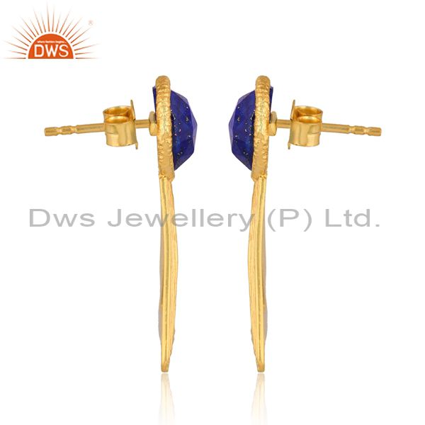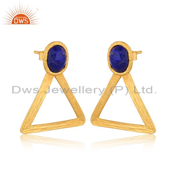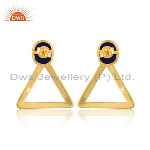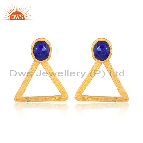 Lapis Set Gold On 925 Silver Handmade Triangular Earrings