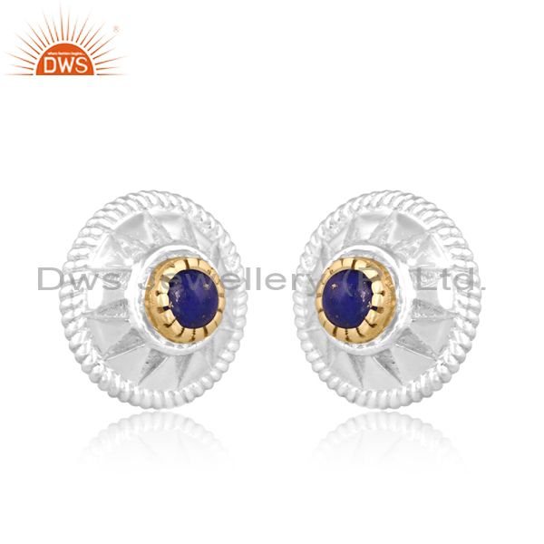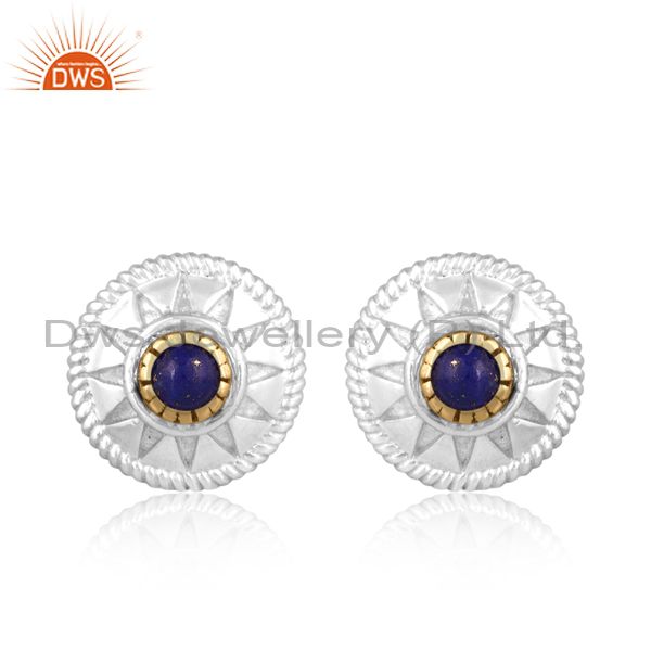 Lapis Set Gold On Fine Sterling Silver Round Boho Earrings