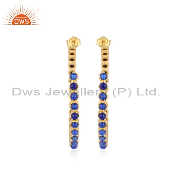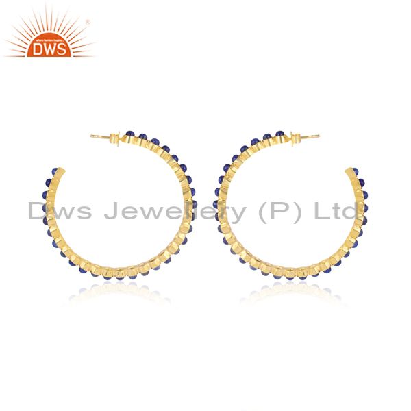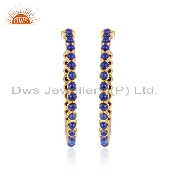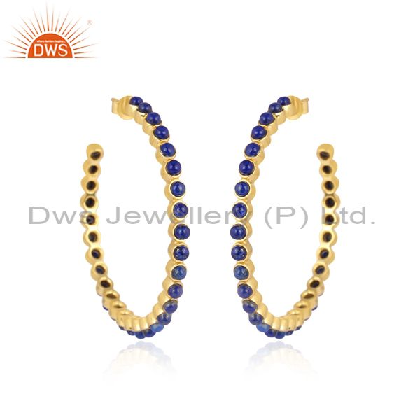 Lapis Set Gold On Sterling Silver Round Hoop Earrings