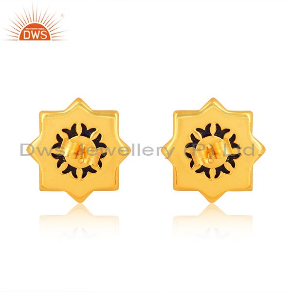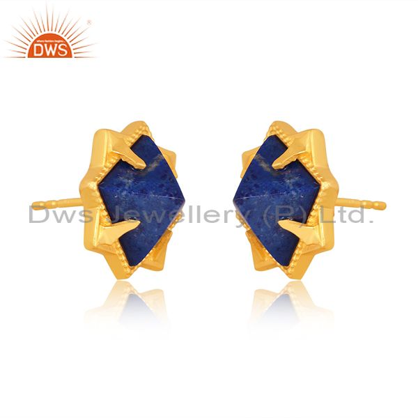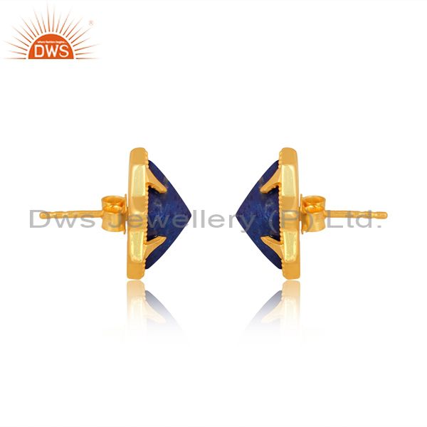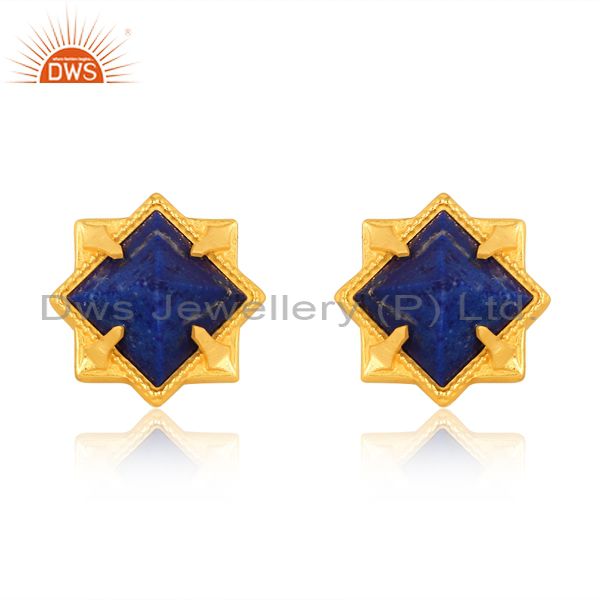 Lapis Square Pyramid Set Gold On Sterling Silver Earrings