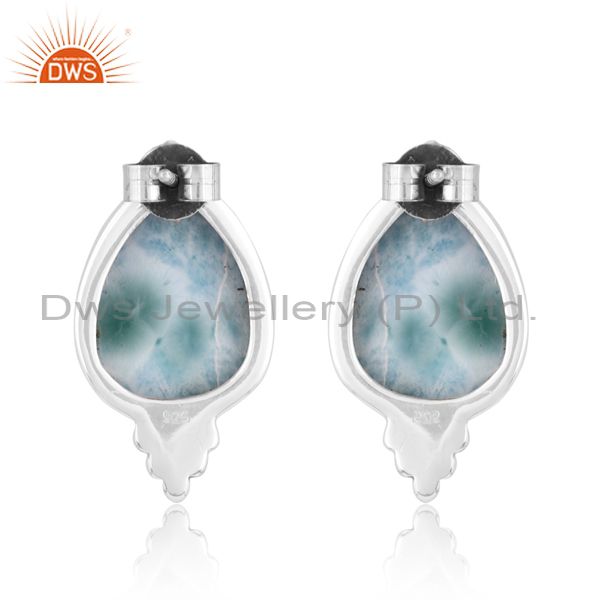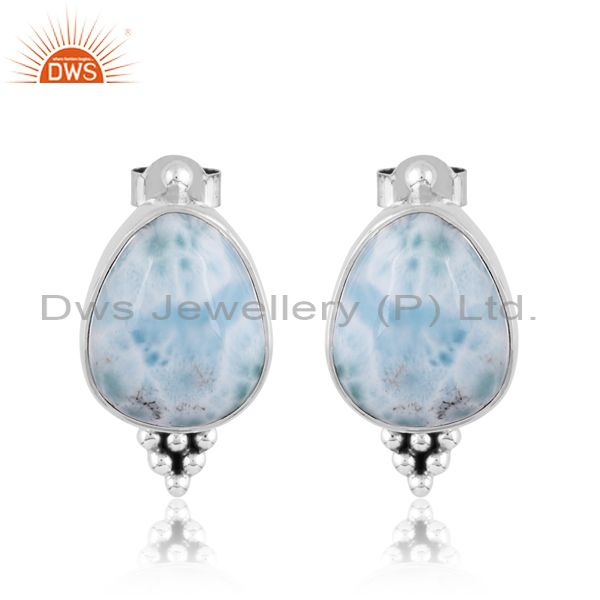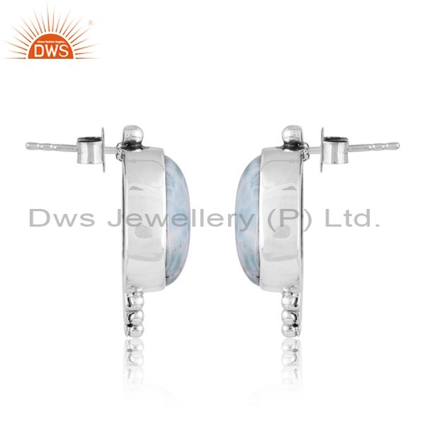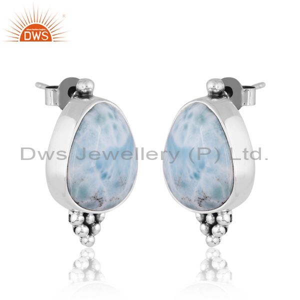 Larimar Cabushion Unshaped Sterling Silver Oxidized Earrings