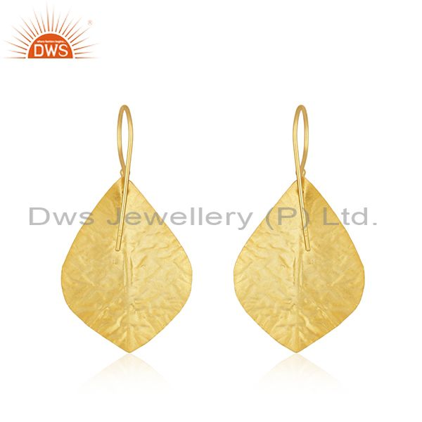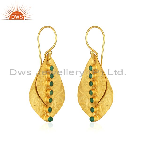 Leaf Design Gold Plated Sterling Silver Green Onyx Gemstone Earrings