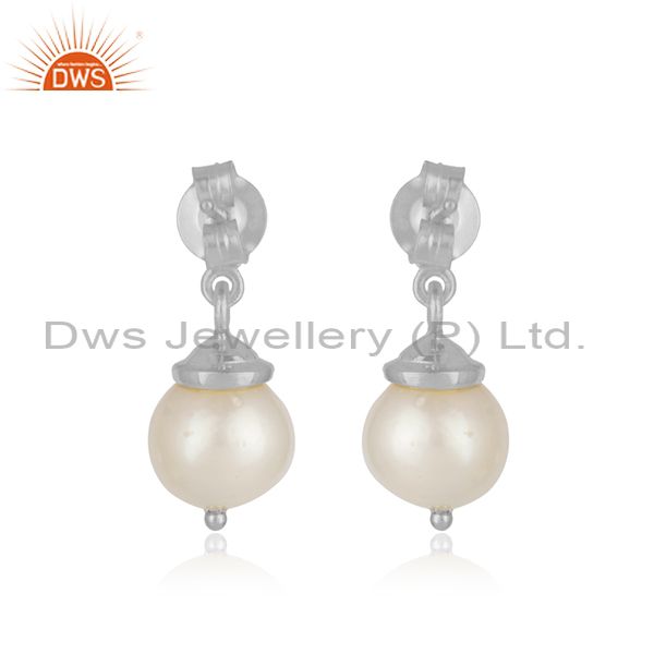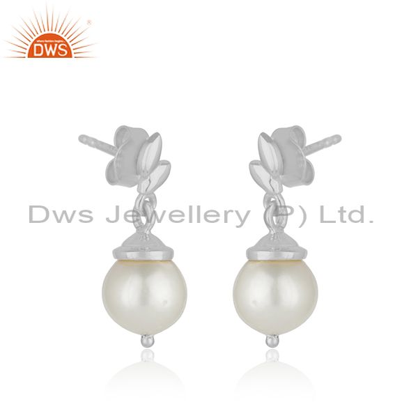 Leaf Design Sterling Fine 925 Silver Natural Pearl Earrings for Womens