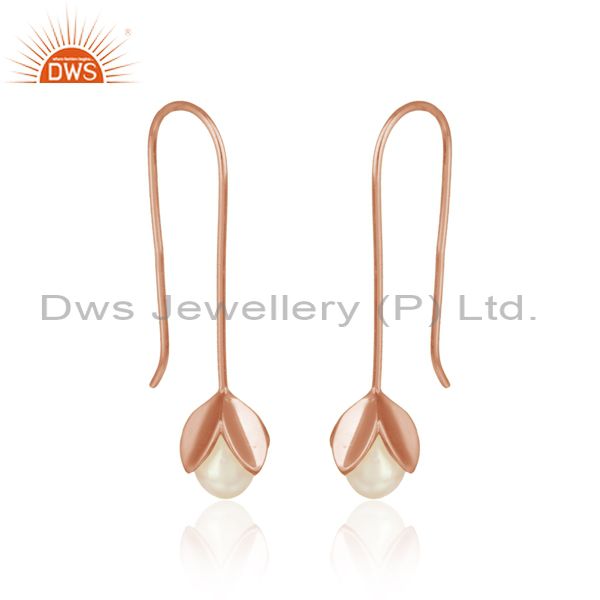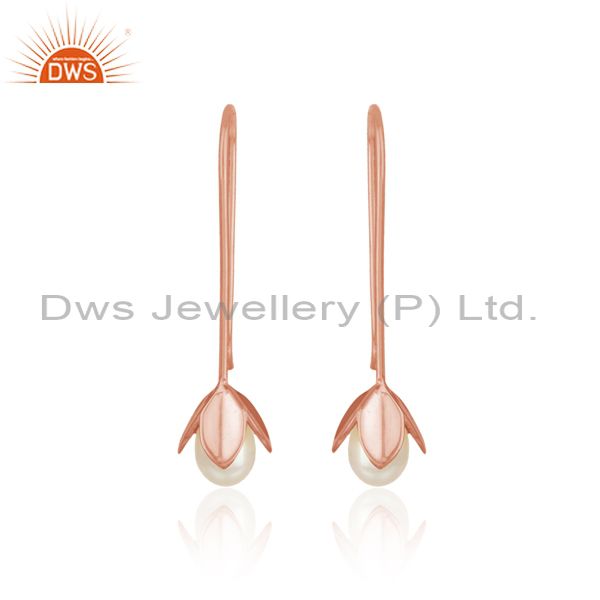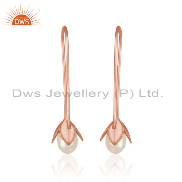 Leaf Drop Earring In Rose Gold On Silver 925 Crafted With Pearl