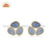 Leaf Gold Plated Silver Blue Chalcedony Gemstone Earrings Jewelry