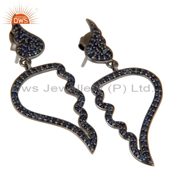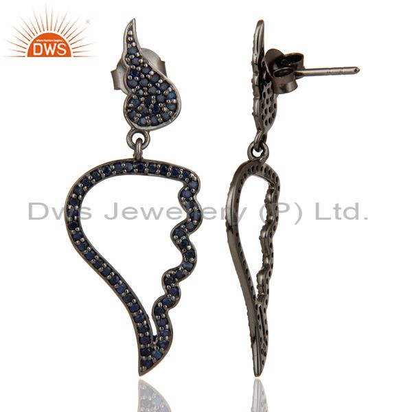 Leaf Rame Design Blue Sapphire & Oxidized Sterling Silver Drop Earring