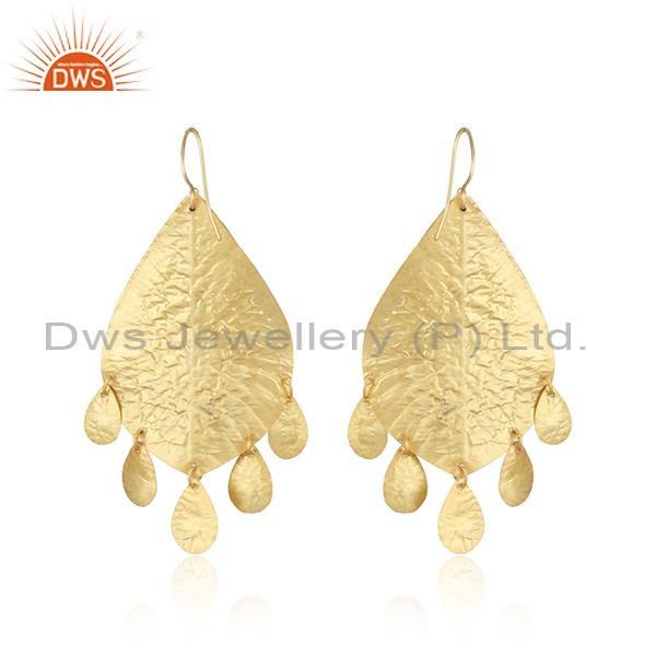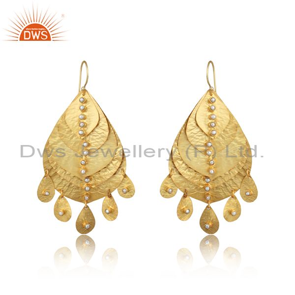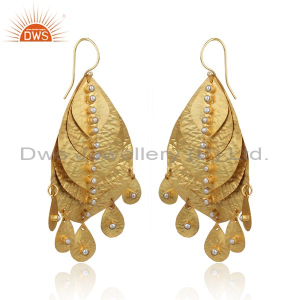 Leaf Textured Handmade Design Gold On Fashion Pearl Earring