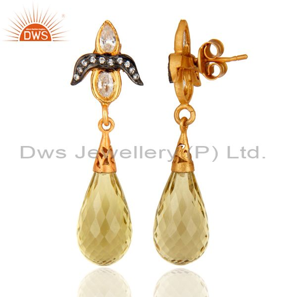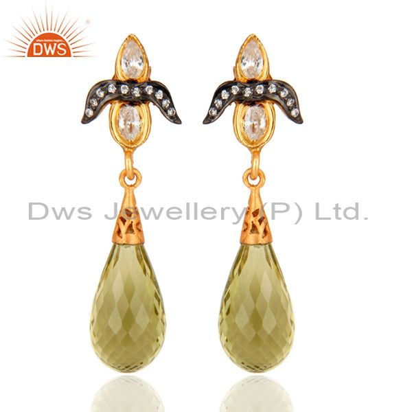 Lemon Topaz And White Zircon 18K Gold On Sterling Silver Gemstone Drop Earrings