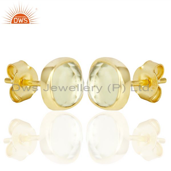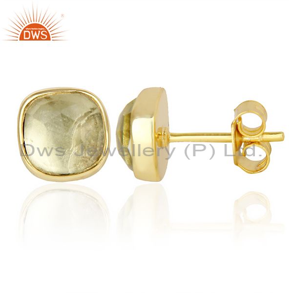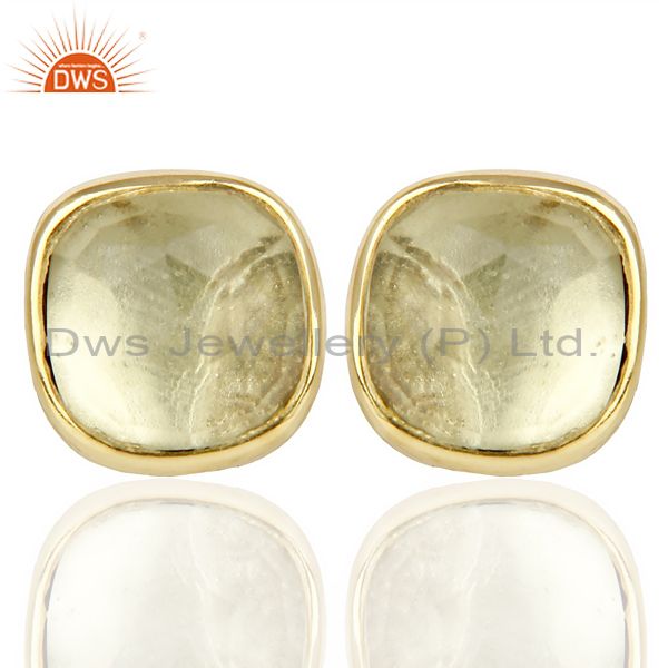 Lemon Topaz Cushion Rose Cut Small 14 K Gold Plated Stud Earring