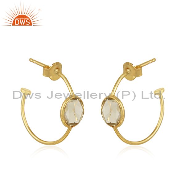Lemon Topaz Gemstone Gold Plated 925 Silver Hoop Earrings Jewelry