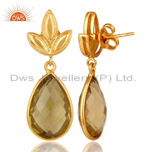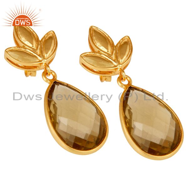 Lemon Topaz Leaf Stud Gold Plated Wholesale Drop Sterling Silver Jewelry