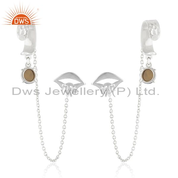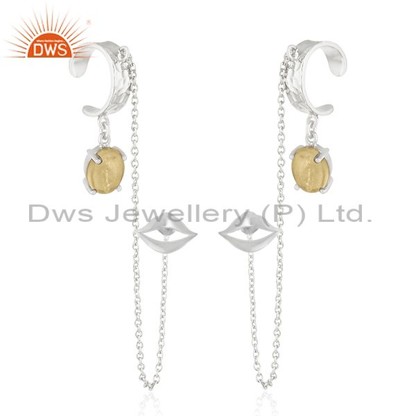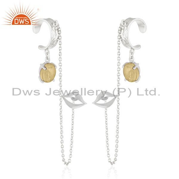Lip Design Citrine Gemstone 925 Sterling Silver Cuff Earring Manufacturer India