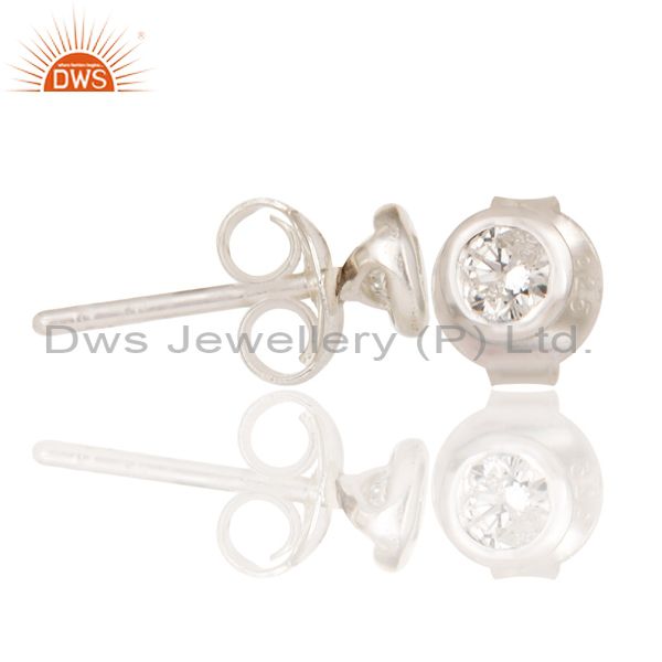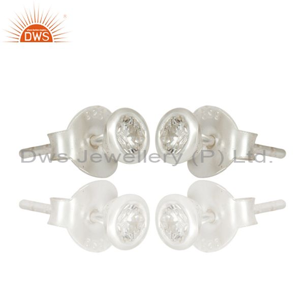 Little Handmade Art Deco Solid 925 Sterling Silver Round Diamond Studs Earrings
