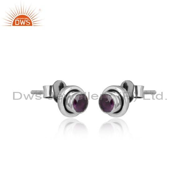 Little Round Oxidized Silver Natural Amethyst Stud Earring