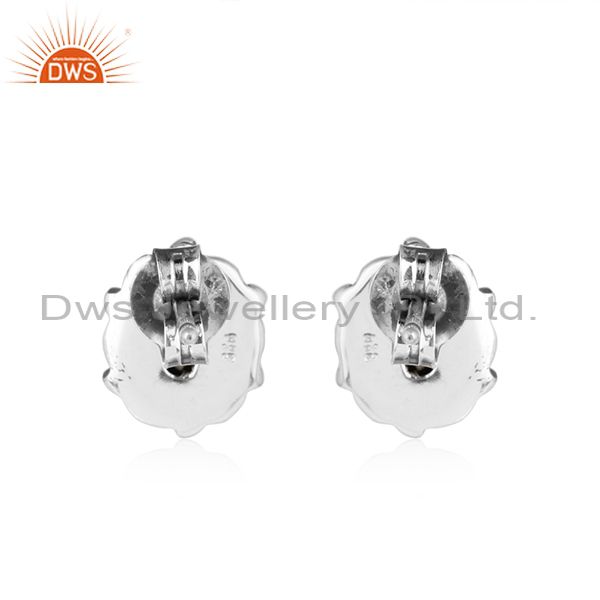 London Blue Topaz Gemstone Designer Silver Oxidized Stud Earring