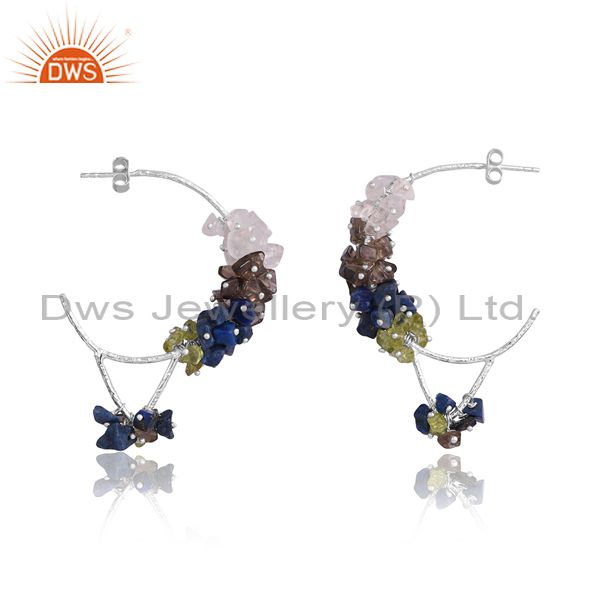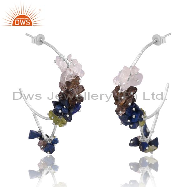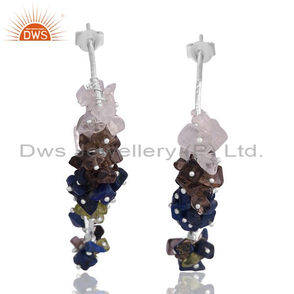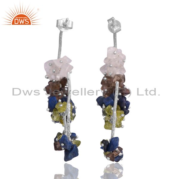Long Drop Cluster Work Earrings For Women With Mixed Stones