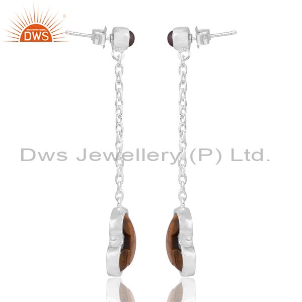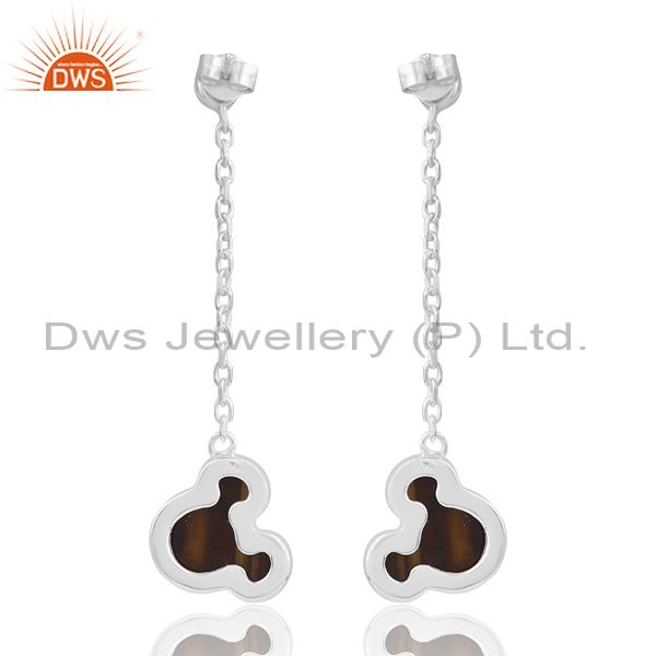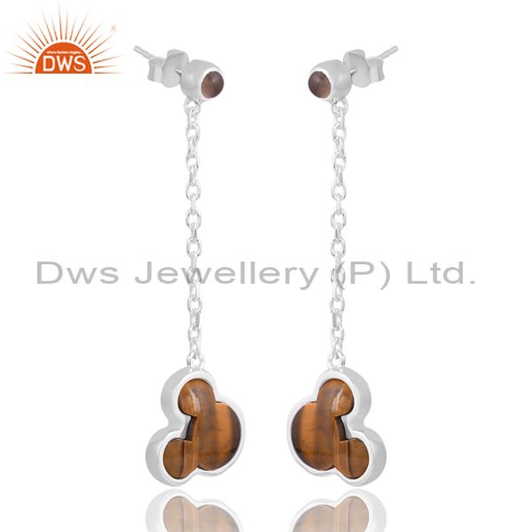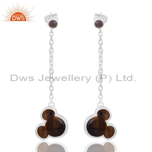 Long Drop Earrings For Youngsters With Tiger Eye Mickey