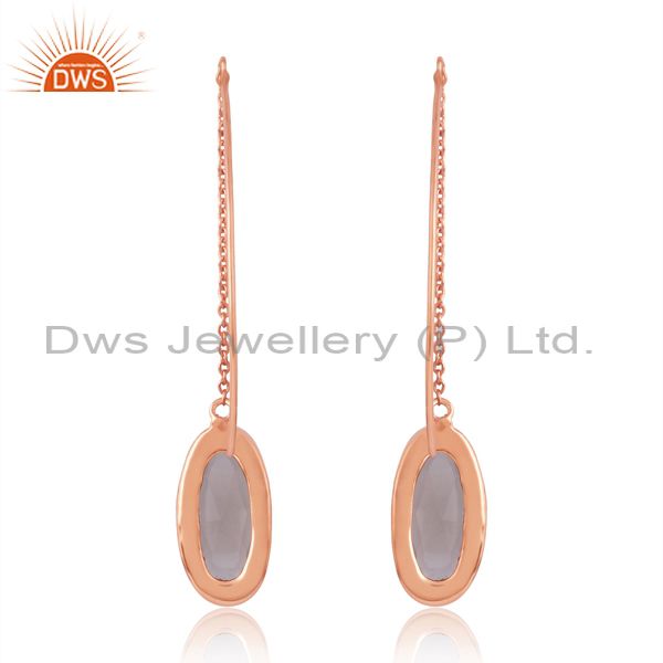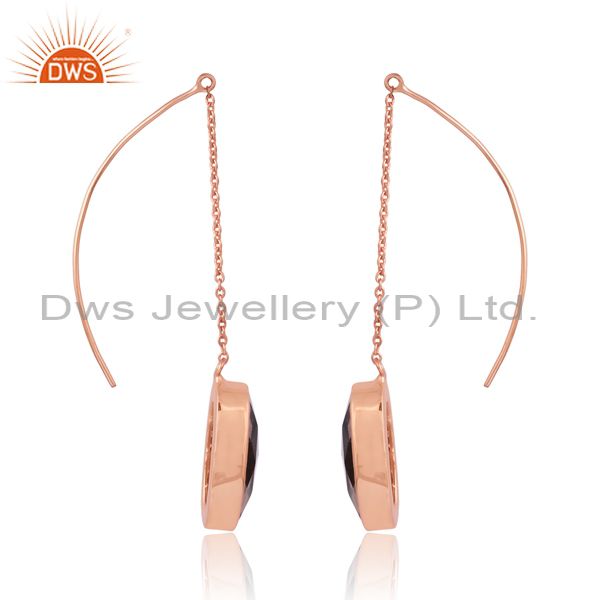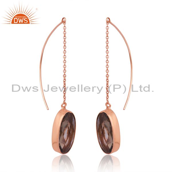 Long Drop Women Brass Stud In Smoky Oval Sterling Silver