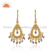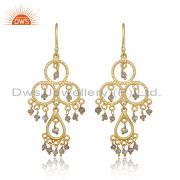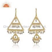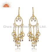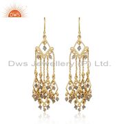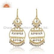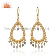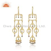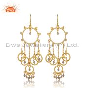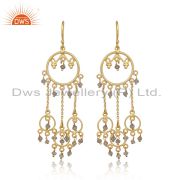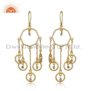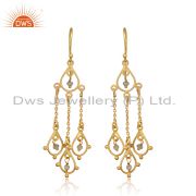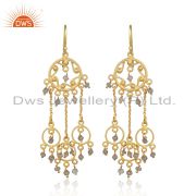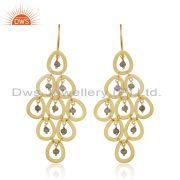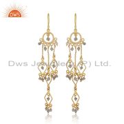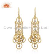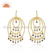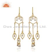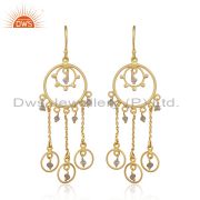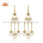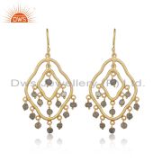 Long Labradorite Sterling Silver Gold Dangler Earrings