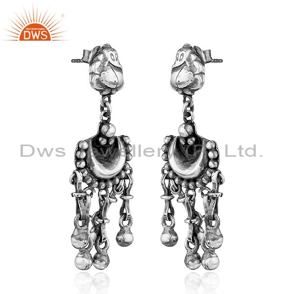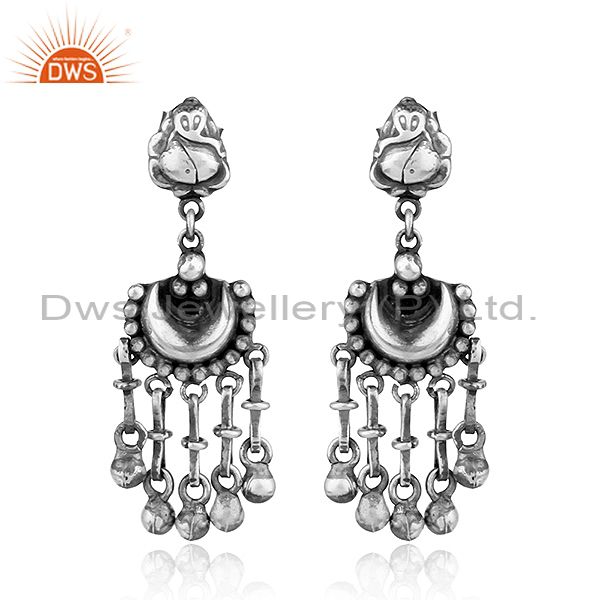 Lord Ganpati Design Traditional Oxidized 925 Sterling Silver Earrings