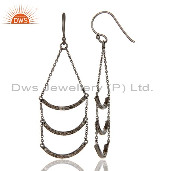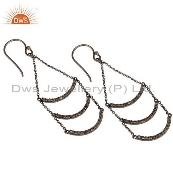 Lotus Dangler Earring Oxidized Sterling Silver Earring with Diamond