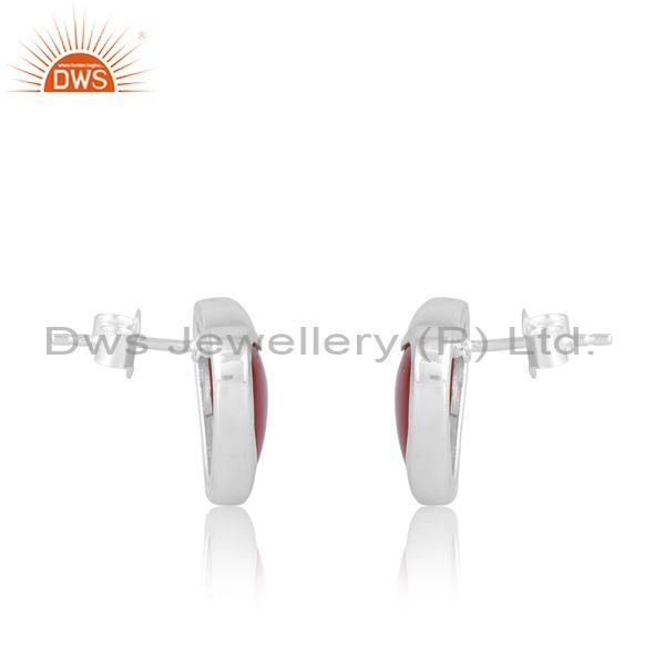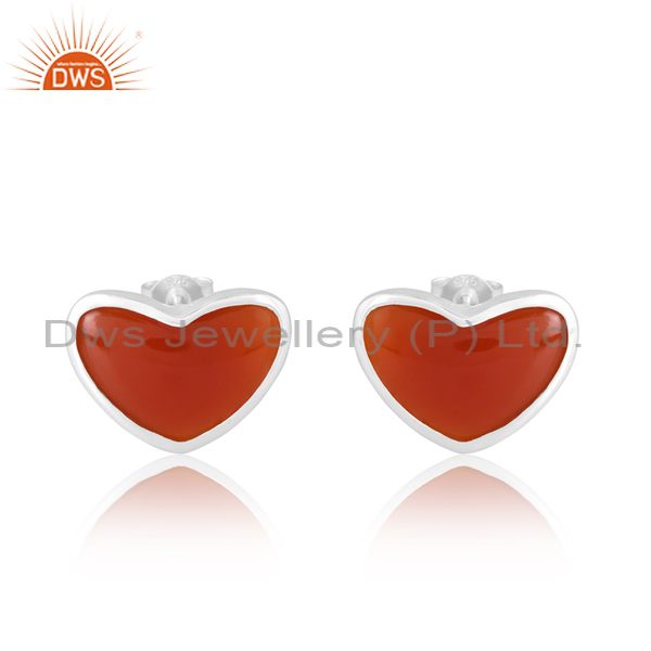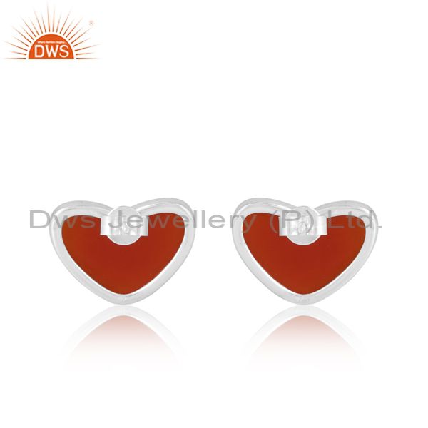 Lovable Red Onyx Heart Stud With Border In Silver Metal