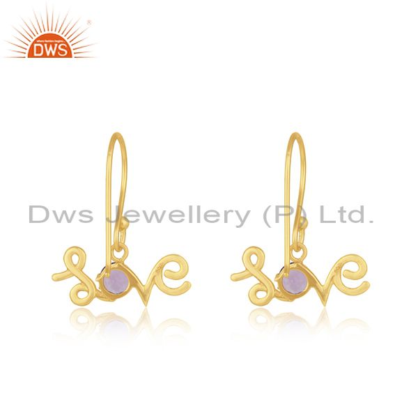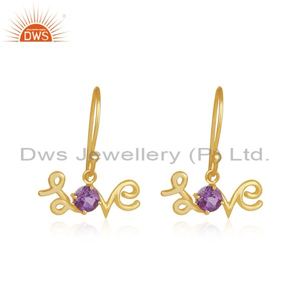 Love Initial Sterling 92.5 Silver Gold Plated Amethyst Birthstone Earrings