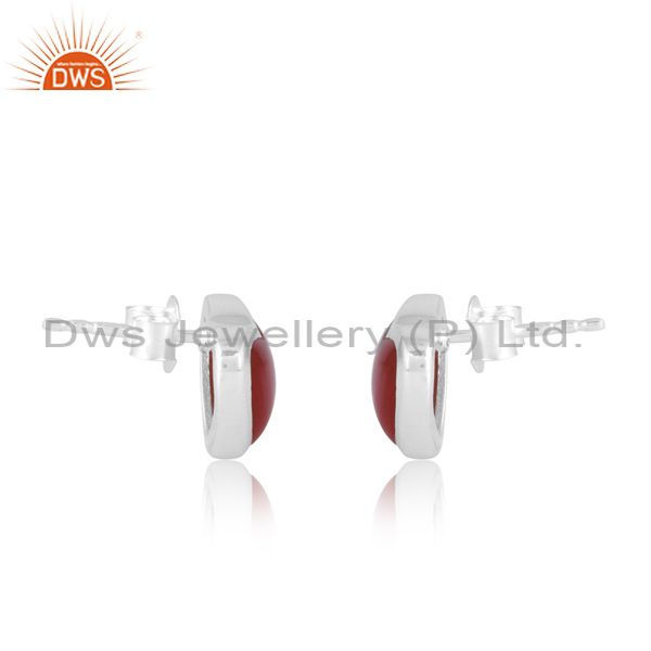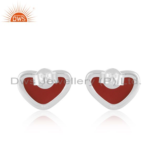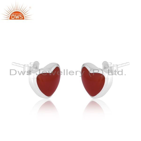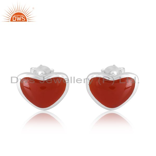 Lovely Red Onyx Cabushion Heart Silver Stud For Casual Look