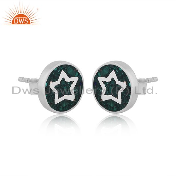 Malachite Coin Set 925 Sterling Silver Star Design Earrings
