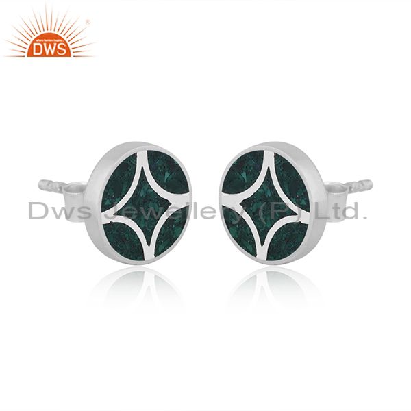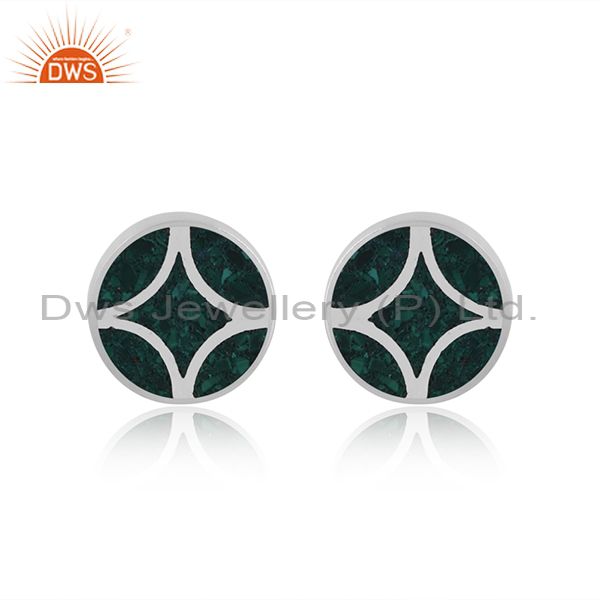 Malachite Coin Set Sterling Silver Abstract Design Earrings
