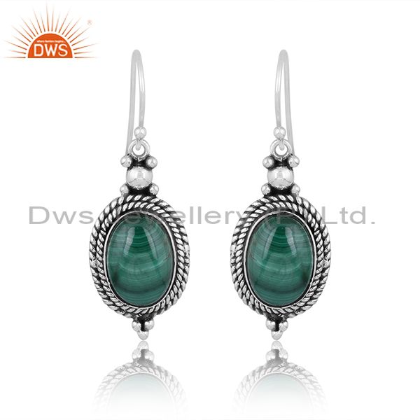 Malachite Set Oxidized Sterling Silver Classic Boho Earrings