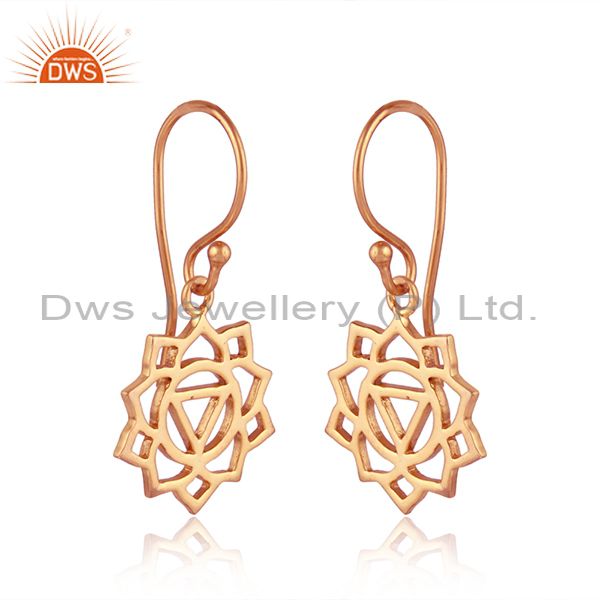 Manipura Chakra Design Rose Gold Plated Silver Womens Earrings