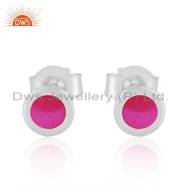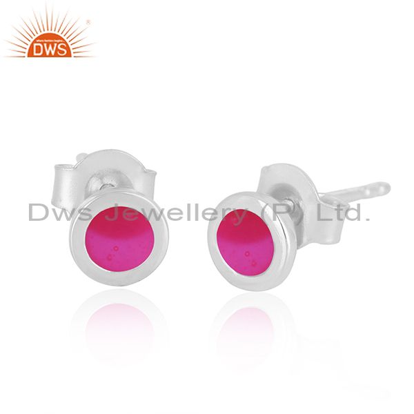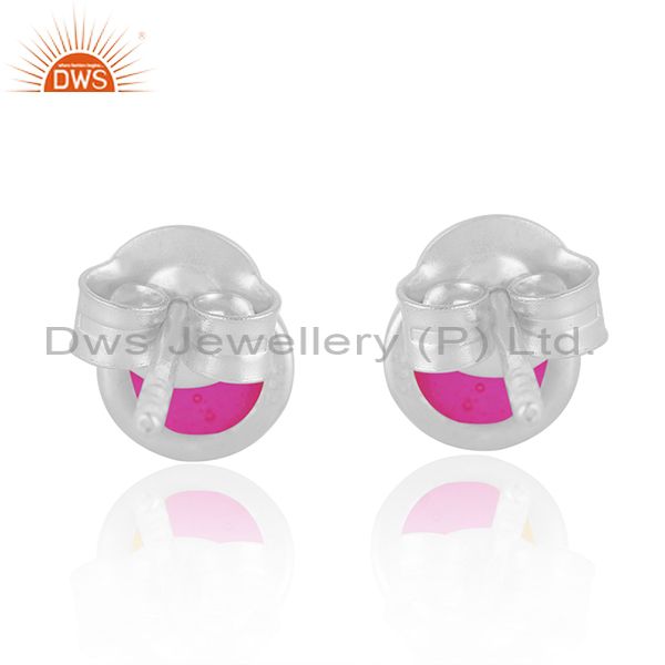 Manufacture Fine Silver Pink Enamel Designer Stud Earrings Jewelry