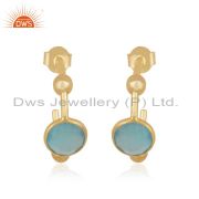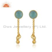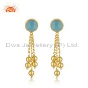 Manufacturer Aqua Chalcedony Gemstone Silver Gold Plated Earrings Jewelry