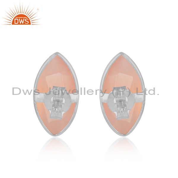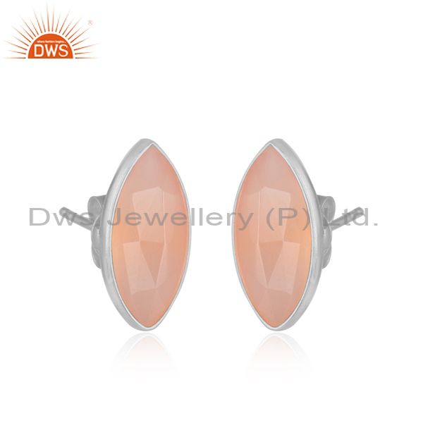 Marquise Rose Chalcedony Gemstone 925 Fine Silver Stud Earrings