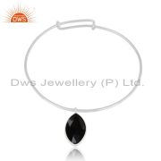 Marquise Shape Black Onyx Gemstone Fine Silver Chain Earrings