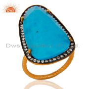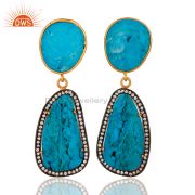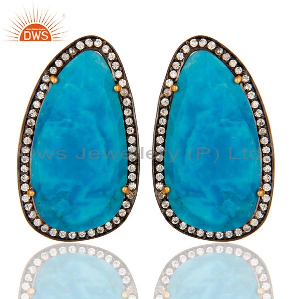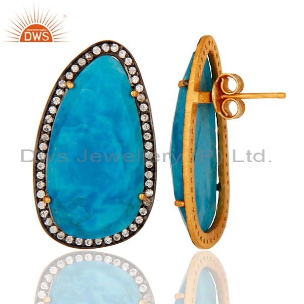 Matrix Turquoise Gemstone Gold-Plated Sterling Silver Stud Earrings With Cz